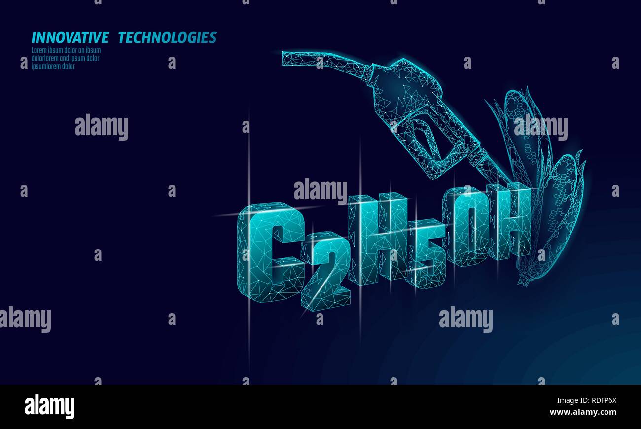 Ethanol Formel Mais Biosprit Gewehr Okologie Wissenschaft C2h5oh Chemie Biotechnologie Eco Konzept Erneuerbare Bioraffinerie Organische Gas 3d Render Polygonalen Innovation Technologie Vector Illustration Stock Vektorgrafik Alamy